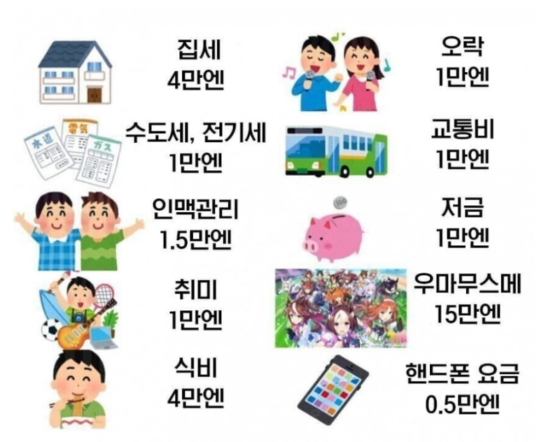 일본 서민들의 월 생활비.