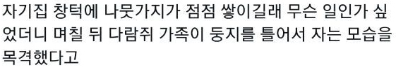 집 창턱에 쌓이던 나뭇가지.