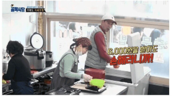 6천원 받아도 손해라는 노이해 메뉴.