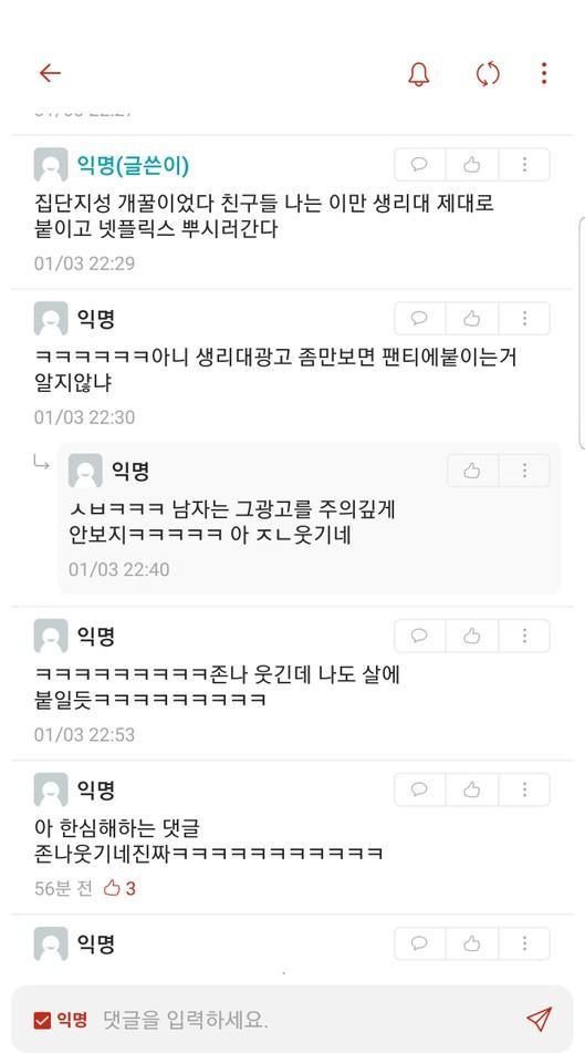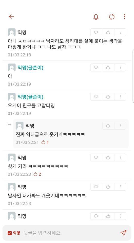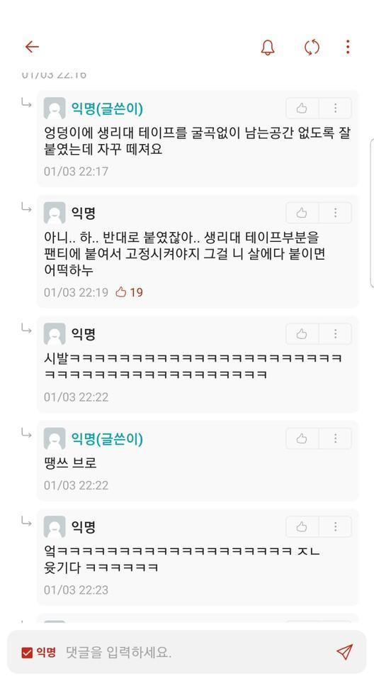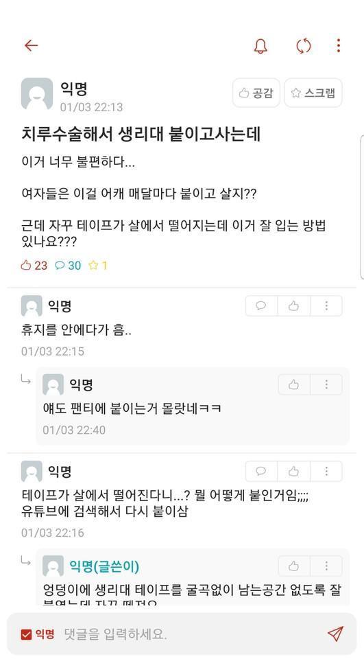 치루 수술후 붙힌 여성용품.