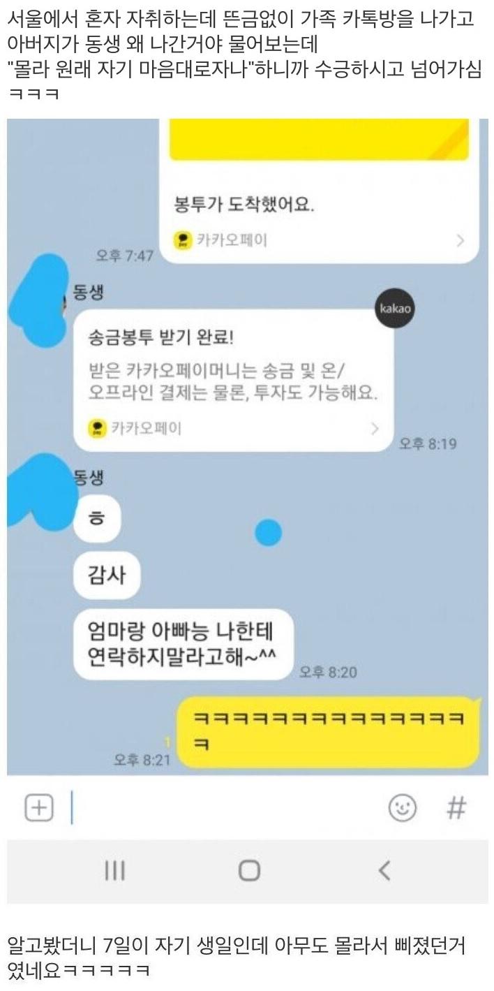 뜬금 가족단톡에서 탈퇴하는 동생.