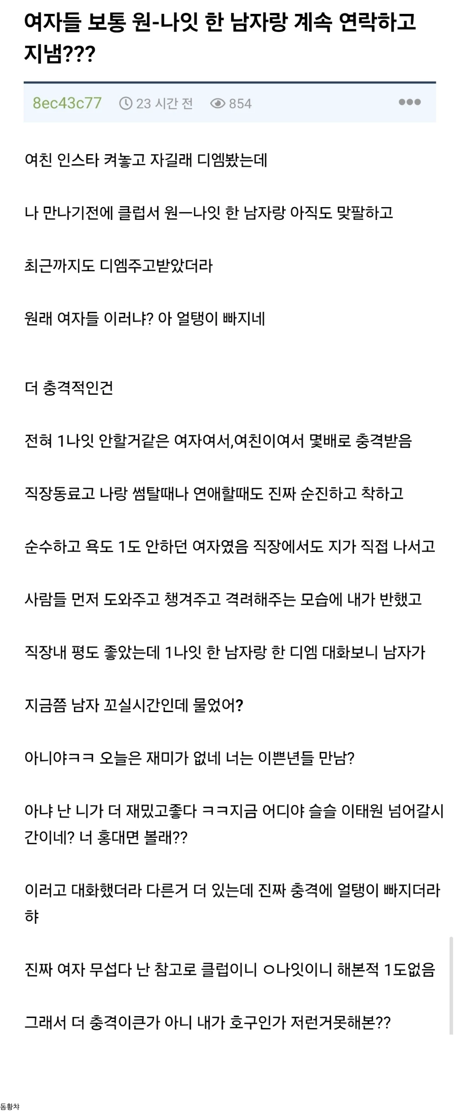 여자들도 원나잇 하고 나서 연락 계속 주고받나?