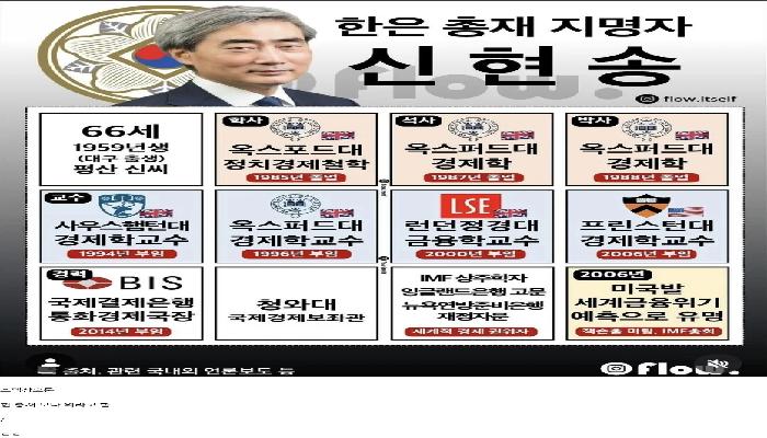 새로 임명된 한은 총재 스펙 수준 ㄷㄷ