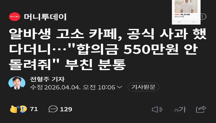 알바할 때 손님 많이 온다고 싫어하지 말라는 고등학교 ...