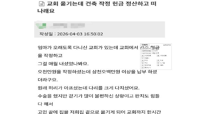 교회 나가려면 1400만원 내야 한다는 교회