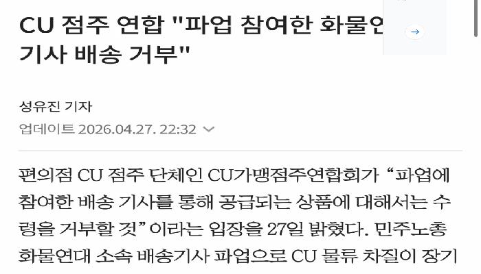 CU 점주 연합, 파업 참여한 화물연대 기사 배송...