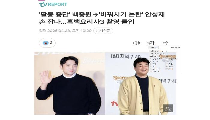 활동 중단' 백종원 ->'바꿔치기 논란' 안성재 ...