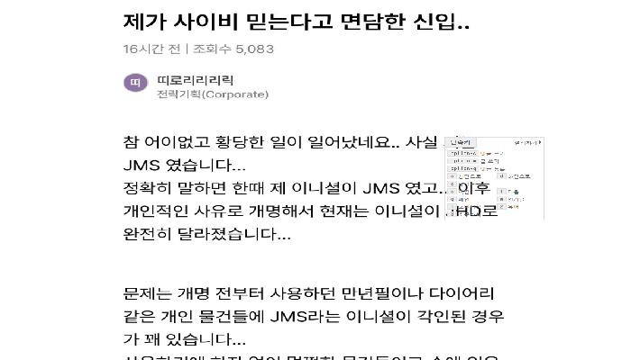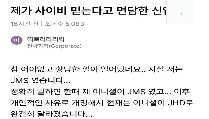 신입사원이 저를 사이비로 오해하는 듯합니다...j...