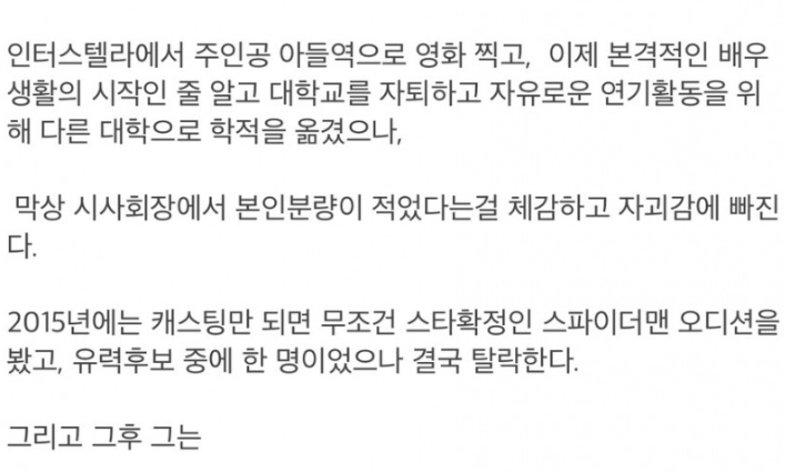 꿈을 위해 대학 자퇴했던 배우.