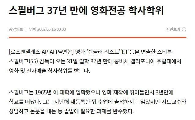 37년만에 졸업한 스필버그.