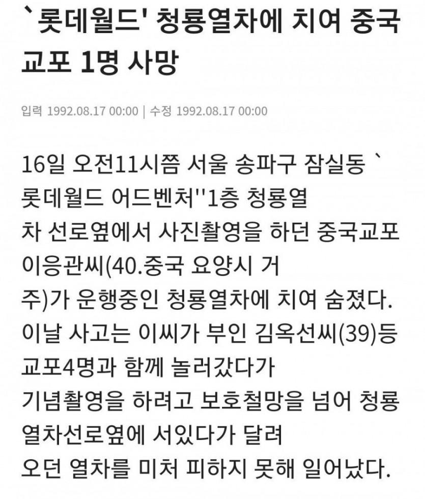 롯데월드 최초의 사망 사고.