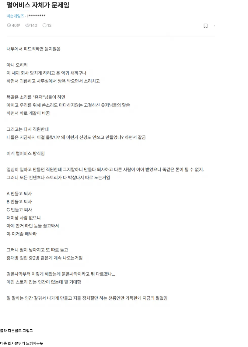 펄어비스 블라인드 폭로 올라왔는데 내용 좀 심각한 듯