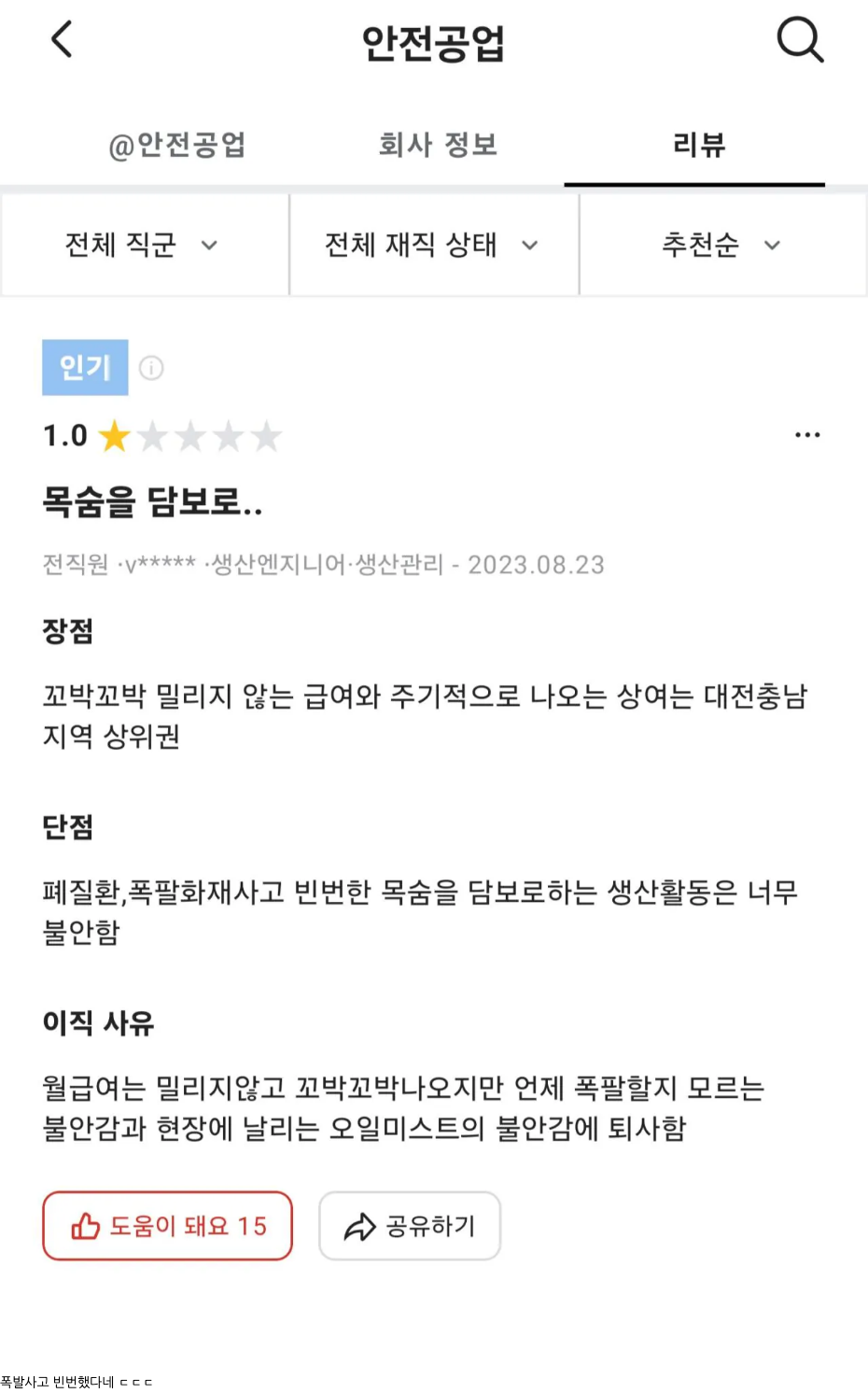 대전 자동차 공장 화재 블라인드에 올라온 후기 ㄷㄷ